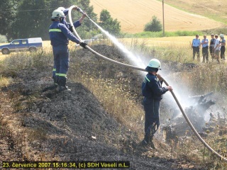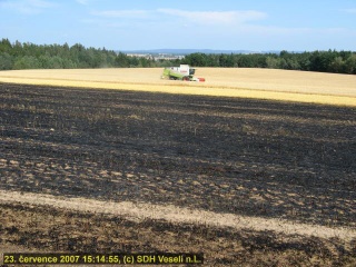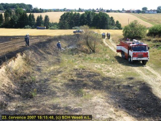 Požár strniště i ještě neposečeného obilí na poli nedaleko Mokré u Soběslavi byl příčinou výjezdu jednotky SDH Veselí nad Lužnicí v pondělí 23.7.2007 odpoledne.