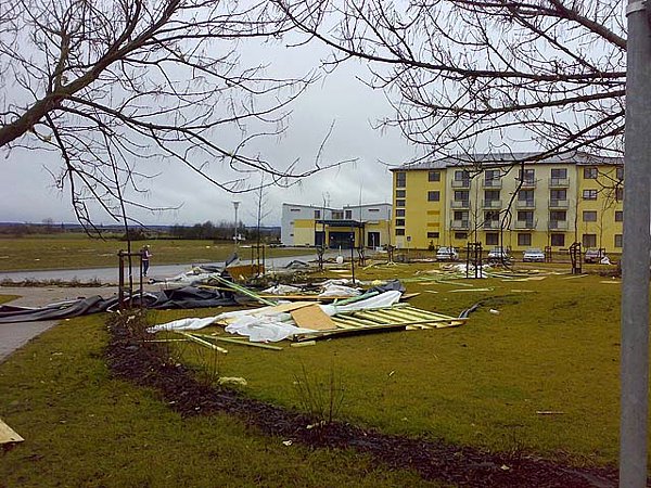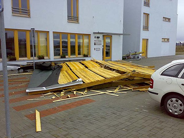 Jako by nestačilo, že naše město sužují opakující se povodně.Dnes se přes nás přehnala vichřice jejíž stupeň si netroufám odhadovat. Její ničivé následky si můžete prohlédnout v nádledujících fotografiích. Nejvíce utrpěl Domov sv. Františka, kde vítr vyrazil okna v horních patrech a téměř celou střechu "rozházel" po sídlišti.