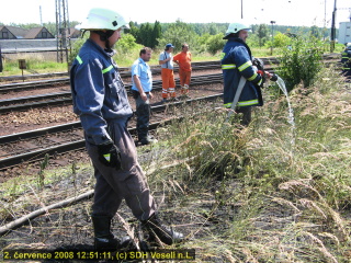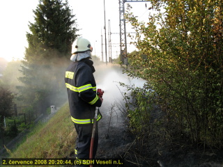 Při příjezdu na místo události zde již zasahovala jednotka HZS Soběslav s CAS–24 Liaz. Hořela tráva na náspu železniční trati Č.Budějovice – Praha za autobazarem Dvořák na ploše cca 30 x 5 metru. Na rozkaz velitele zásahu natáhla naše jednotka jedno vedení „B“ a jedno vedení „C“ a zahájila hasební práce. Na místo se dostavila též jednotka SDH Přehořov s CAS–25 Škoda 706, která byla následně odvolána a jednotka HZS Českých drah s CAS–32 Tatra 815. Po likvidaci se naše jednotka na rozkaz VZ vrátila na základnu.