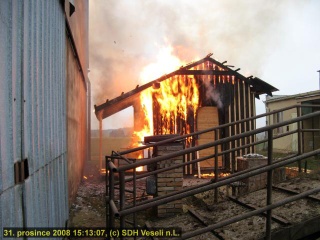 Naše jednotka dorazila na místo zásahu v obci Val – Hamr společně s jednotkou HZS Soběslav (CAS-24 Liaz). Průzkumem bylo zjištěno, že se jedná o požár trvale obydlené zahradní chatky, která stojí těsně vedle kravína. Pomocí jednoho proudu vysokotlaké vody zahájila lokalizaci požáru. Zároveň byla jedním proudem C ochlazována stěna a střecha vedle stojícího kravína. Jednou bylo také provedeno doplnění vody do CAS-24 Liaz HZS Soběslav. Na místo se dostavila také jednotka SDH Kardašova Řečice (CAS-24 Liaz), která doplňovala vodu do naší CAS-32 Tatra 815. Po lokalizaci požáru bylo prováděno rozebírání ohořelých konstrukcí a dohašování skrytých ohnisek. Vysokotlakým proudem byla také ochlazována 2 kg propan-butanová láhev s vařičem, která byla vynesena s chatky. Po likvidaci se naše jednotka na rozkaz velitele zásahu vrátila na základnu.