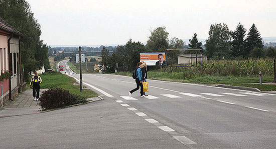 Propojení Budějovické ulice s marketem TESCO osvětleným chodníkem