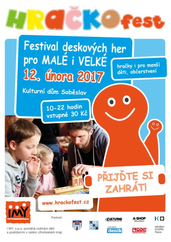 S radostí vás zveme na třetí ročník oblíbené benefiční akce, na které si s přáteli či dětmi užijete známé i netradiční hry, příjemně se pobavíte, vyzkoušíte hračky z půjčovny I MY, které pomáhají dětem s postižením. Na HRAČKOfestu najdete hry pro kohokoliv od 1 do 150 let :-). TĚŠÍME SE! Domácí občerstvení na místě k zakoupení. Pro nejmenší jsou připravené didaktické hry. Vstupné 30 Kč. Více na www.hrackofest.cz. Obecně prospěšná společnost I MY
