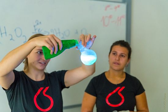 Zástupci VŠCHT přivezli s sebou programy „Potraviny pod lupou“ a „Chemie v kriminalistice“. Ukázali žákům, jak moc je chemie zajímavá a kde všude pomáhá.